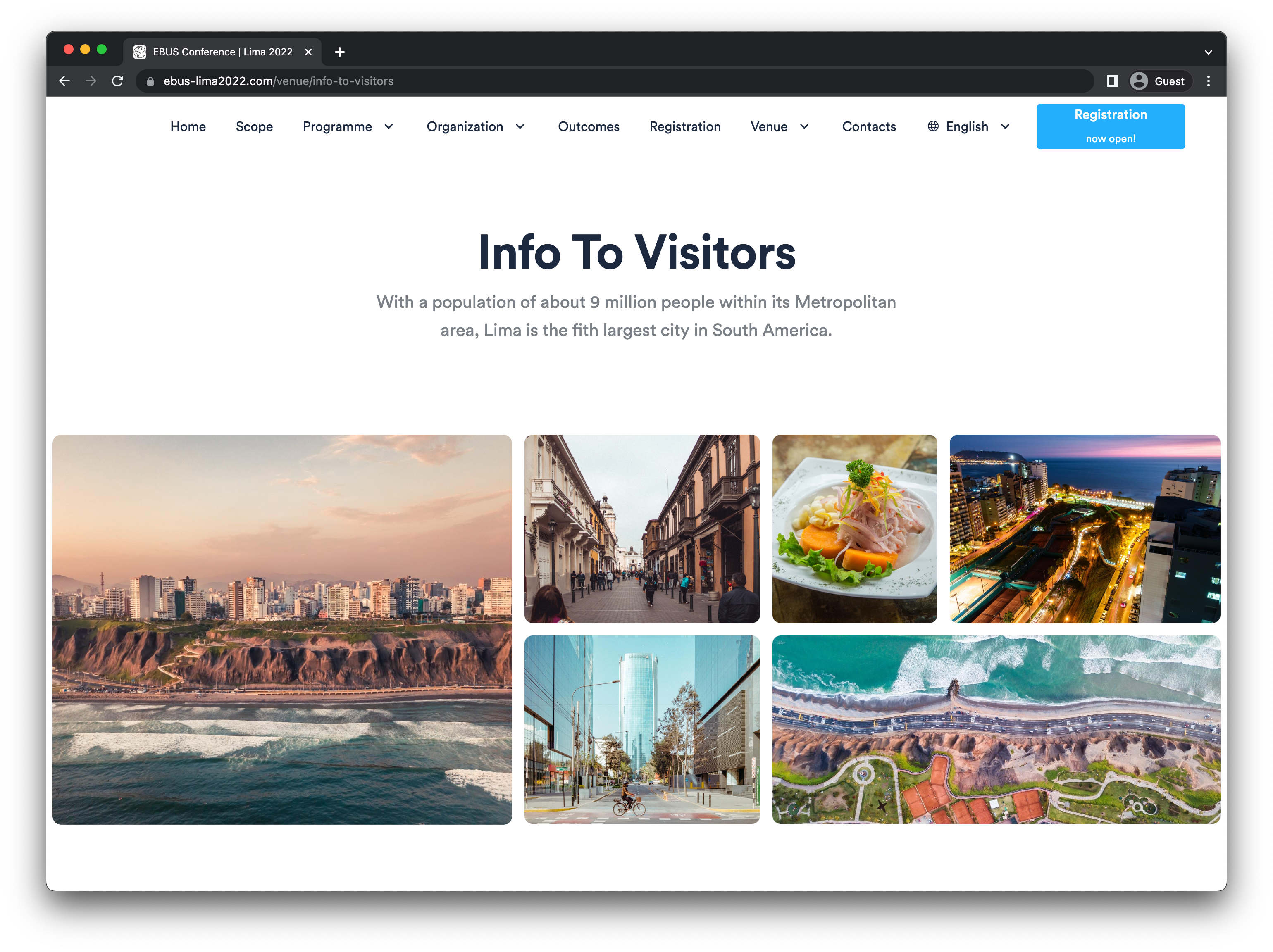 While working as a research assistant at UTEC in Lima, I met Ivonne Montes, who presented me with the opportunity to lead a team to develop the ebus-lima2022.com platform. The job consisted in working for a few months under a contract with the IRD (Institut de Recherche pour le Développement) to create the desired web platform in charge of presenting relevant information to the attendees and allowing the possibility of submitting abstracts, sessions, and relevant information.